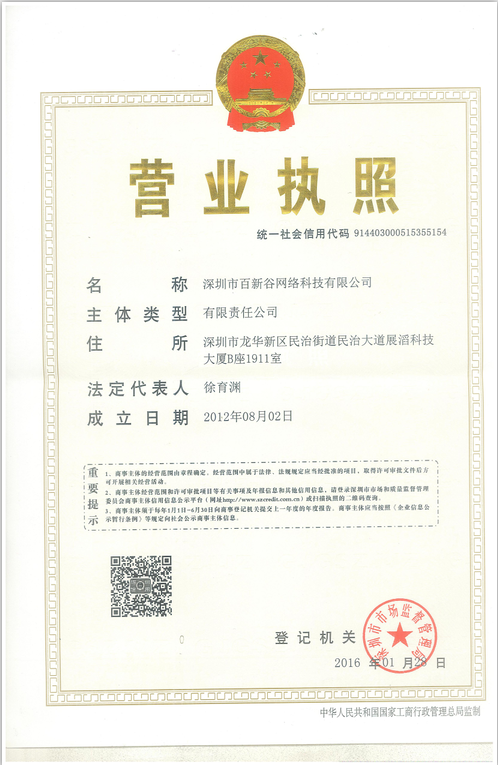 百新谷五网合一云网站营销系统 | 百新谷PCB在线下单管理系统 | 百新谷营业执照 |